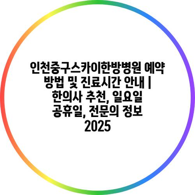 인천중구스카이한방병원 예약 방법 및 진료시간 공지 | 한의사 추천, 일요일 공휴일, 전연락 정보 2025 에 대해 자주 묻는 질문 TOP 5