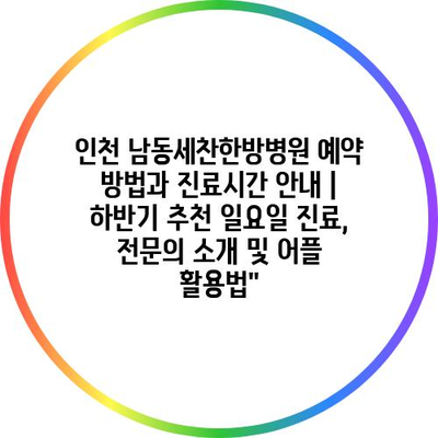 인천 남동세찬한방병원 예약 방법과 진료시간 공지 | 하반기 추천 일요일 진료, 전연락 소개 및 어플 활용법