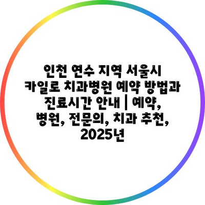 인천 연수 지역 서울시 카일로 치과병원 예약 방법과 진료시간 공지 | 예약, 병원, 전연락, 치과 추천, 2025년 에 대해 자주 묻는 질문 TOP 5