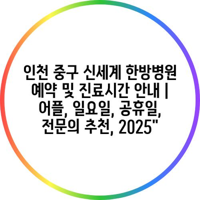 인천 중구 신세계 한방병원 예약 및 진료시간 공지 | 어플, 일요일, 공휴일, 전연락 추천, 2025에 대해 알아보겠습니다.