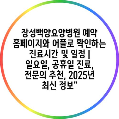 장성백양요양병원 예약 홈페이지와 어플로 확인하는 진료시간 및 일정 | 일요일, 공휴일 진료, 전연락 추천, 2025년 최신 정보” 에 대해 자주 묻는 질문 TOP 5