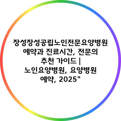 장성장성공립노인전문요양병원 예약과 진료시간, 전연락 추천 설명서 | 노인요양병원, 요양병원 예약, 2025에 대해 알아보겠습니다.