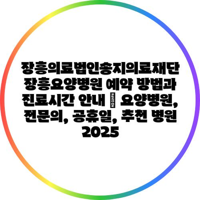 ✅ 장흥요양병원의 예약 방법과 진료 시간을 자세히 알아보세요!