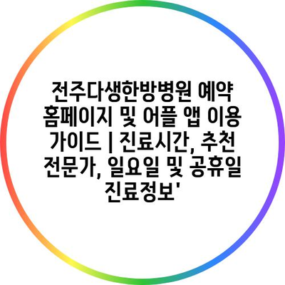 ✅ 전주다생한방병원의 예약 방법을 지금 바로 알아보세요!