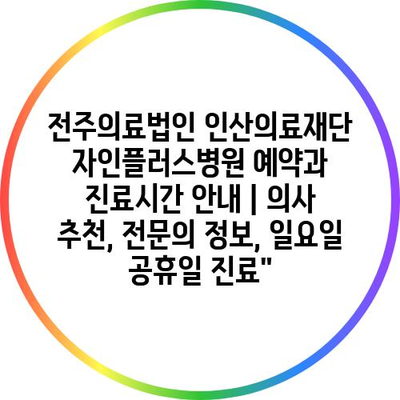 전주의료법인 인산의료재단 자인플러스병원 예약과 진료시간 공지 | 의사 추천, 전연락 정보, 일요일 공휴일 진료에 대해 자주 묻는 질문 TOP 5