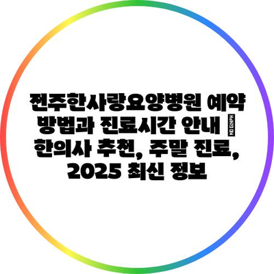 전주한사랑요양병원 예약 방법과 진료시간 공지 | 한의사 추천, 주말 진료, 2025 최신 정보 에 대해 자주 묻는 질문 TOP 5