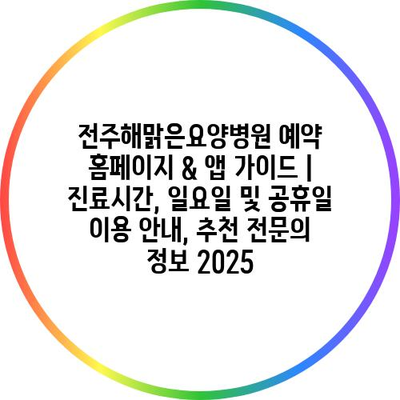 전주해맑은요양병원 예약 홈페이지 & 앱 설명서 | 진료시간, 일요일 및 공휴일 이용 공지, 추천 전연락 정보 2025에 대해 알아보겠습니다.