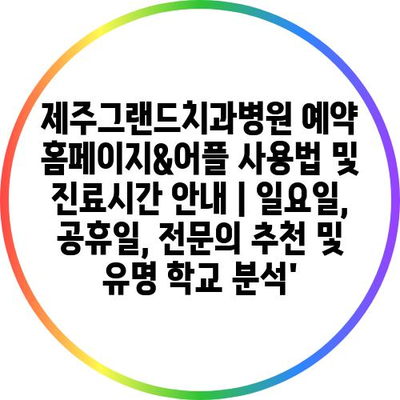 제주그랜드치과병원 예약 홈페이지&어플 사용법 및 진료시간 안내 | 일요일, 공휴일, 전문의 추천 및 유명 학교 분석’