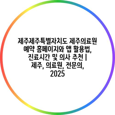 ✅ 제주 제주의료원 예약 팁과 의사 추천을 지금 알아보세요.