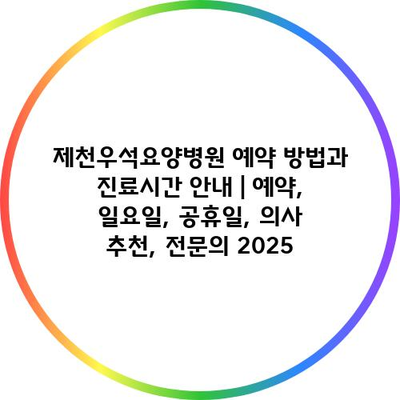제천우석요양병원 예약 방법과 진료시간 공지 | 예약, 일요일, 공휴일, 의사 추천, 전연락 2025 에 대해 자주 묻는 질문 TOP 5