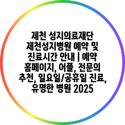 ✅ 제천 성지병원의 진료시간과 예약 방법을 지금 바로 알아보세요.