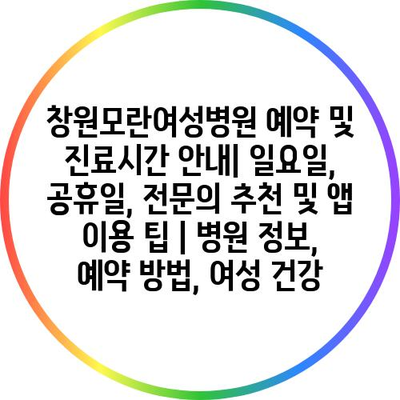 창원모란여성병원 예약 및 진료시간 공지| 일요일, 공휴일, 전연락 추천 및 앱 이용 팁 | 병원 정보, 예약 방법, 여성 건강에 대해 자주 묻는 질문 TOP 5