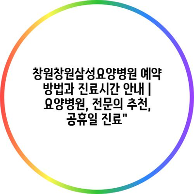 창원창원삼성요양병원 예약 방법과 진료시간 공지 | 요양병원, 전연락 추천, 공휴일 진료에 대해 자주 묻는 질문 TOP 5
