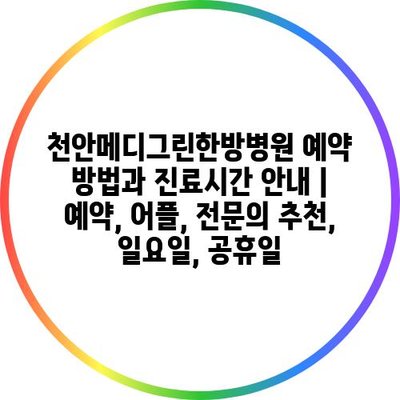 ✅ 천안메디그린한방병원의 예약 방법을 자세히 알아보세요.