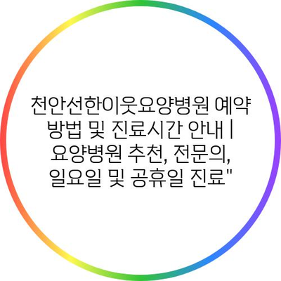 천안선한이웃요양병원 예약 방법 및 진료시간 안내 | 요양병원 추천, 전문의, 일요일 및 공휴일 진료”