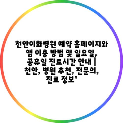 천안이화병원 예약 홈페이지와 앱 이용 방법 및 일요일, 공휴일 진료시간 공지 | 천안, 병원 추천, 전연락, 진료 정보’에 대해 자주 묻는 질문 TOP 5