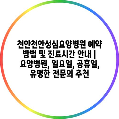 ✅ 천안천안성심요양병원의 예약 방법을 자세히 알아보세요.