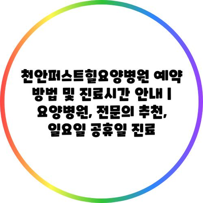 ✅ 천안퍼스트힐 요양병원의 예약 방법과 진료시간을 알아보세요.