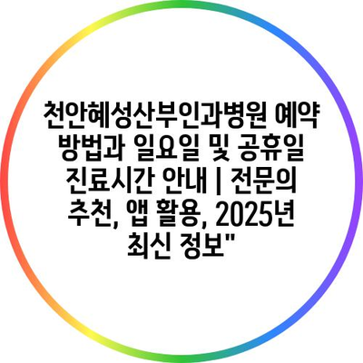 천안혜성산부인과병원 예약 방법과 일요일 및 공휴일 진료시간 공지 | 전연락 추천, 앱 활용, 2025년 최신 정보에 대해 자주 묻는 질문 TOP 5
