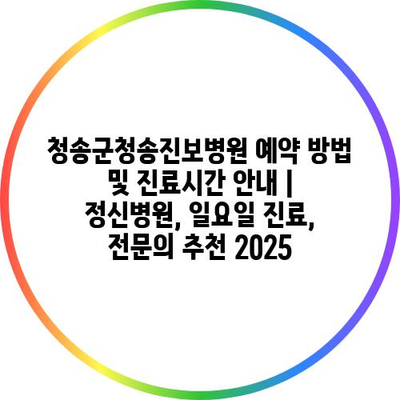 청송군청송진보병원 예약 방법 및 진료시간 공지 | 정신병원, 일요일 진료, 전연락 추천 2025 에 대해 자주 묻는 질문 TOP 5