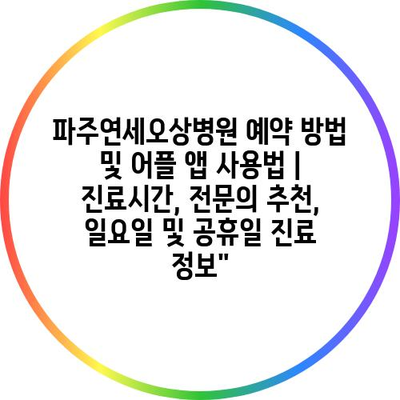 파주연세오상병원 예약 방법 및 어플 앱 사용법 | 진료시간, 전연락 추천, 일요일 및 공휴일 진료 정보에 대해 자주 묻는 질문 TOP 5