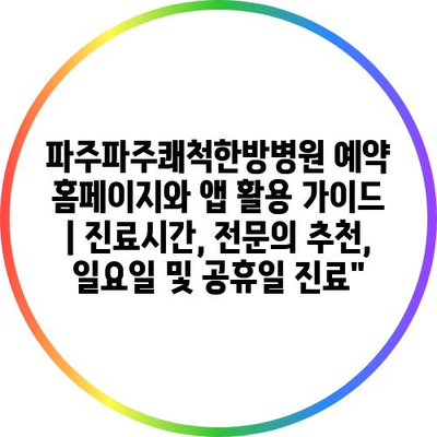 파주파주쾌척한방병원 예약 홈페이지와 앱 활용 설명서 | 진료시간, 전연락 추천, 일요일 및 공휴일 진료