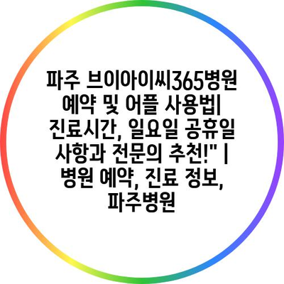 파주 브이아이씨365병원 예약 및 어플 사용법| 진료시간, 일요일 공휴일 사항과 전연락 추천!” | 병원 예약, 진료 정보, 파주병원 에 대해 자주 묻는 질문 TOP 5
