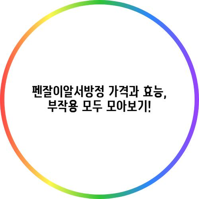 펜잘이알서방정의 가격, 효능, 부작용에 대해 자세히 알아보세요. 안전하게 복용하는 방법과 주의사항을 소개합니다.