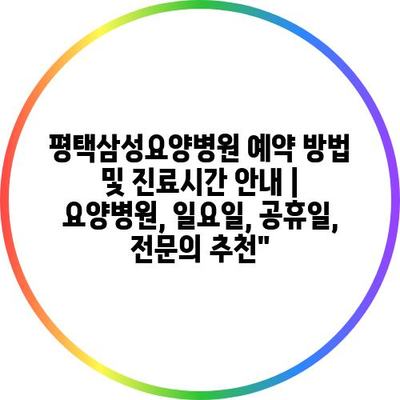 평택삼성요양병원의 예약 방법과 진료시간을 지금 바로 알아보세요!