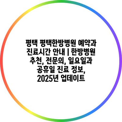 평택 평택한방병원 예약과 진료시간 공지 | 한방병원 추천, 전연락, 일요일과 공휴일 진료 정보, 2025년 업데이트 에 대해 자주 묻는 질문 TOP 5