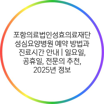 포항의료법인성효의료재단 성심요양병원 예약 방법과 진료시간 공지 | 일요일, 공휴일, 전연락 추천, 2025년 정보 에 대해 자주 묻는 질문 TOP 5