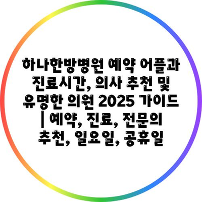 하나한방병원 예약 어플과 진료시간, 의사 추천 및 유명한 의원 2025 가이드 | 예약, 진료, 전문의 추천, 일요일, 공휴일