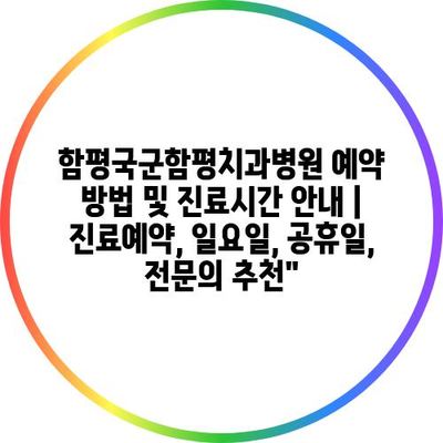 ✅ 함평국군함평치과병원의 예약 방법을 지금 확인해 보세요!