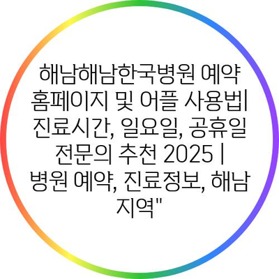 해남해남한국병원 예약 홈페이지 및 어플 사용법| 진료시간, 일요일, 공휴일 전연락 추천 2025 | 병원 예약, 진료정보, 해남 지역에 대해 자주 묻는 질문 TOP 5