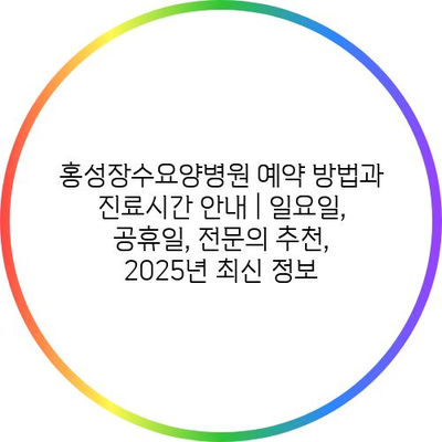 홍성장수요양병원 예약 방법과 진료시간 공지 | 일요일, 공휴일, 전연락 추천, 2025년 최신 정보 에 대해 자주 묻는 질문 TOP 5