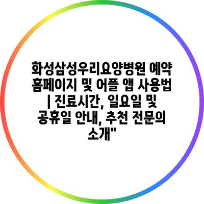 ✅ 화성삼성우리요양병원의 예약 방법과 진료 정보를 알아보세요.