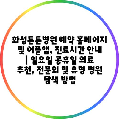 화성튼튼병원 예약 홈페이지 및 어플앱, 진료시간 안내 | 일요일 공휴일 의료 추천, 전문의 및 유명 병원 탐색 방법