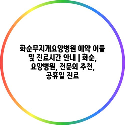 ✅ 화순무지개요양병원의 진료시간과 예약 방법을 자세히 알아보세요.