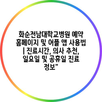 화순전남대학교병원 예약 홈페이지 및 어플 앱 사용법 | 진료시간, 의사 추천, 일요일 및 공휴일 진료 정보에 대해 자주 묻는 질문 TOP 5