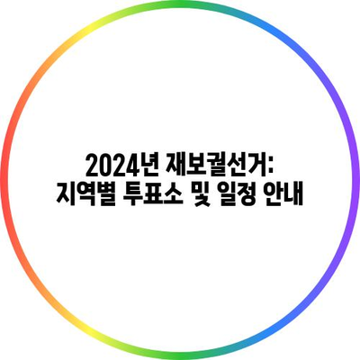 💡 2024년 재보궐선거의 투표소와 일정을 자세히 알아보세요. 💡