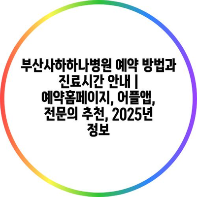 부산사하하나병원 예약 방법과 진료시간 안내 | 예약홈페이지, 어플앱, 전문의 추천, 2025년 정보