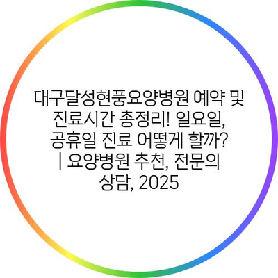 대구달성현풍요양병원 예약 및 진료시간 총정리! 일요일, 공휴일 진료 어떻게 할까? | 요양병원 추천, 전문의 상담, 2025