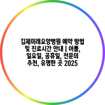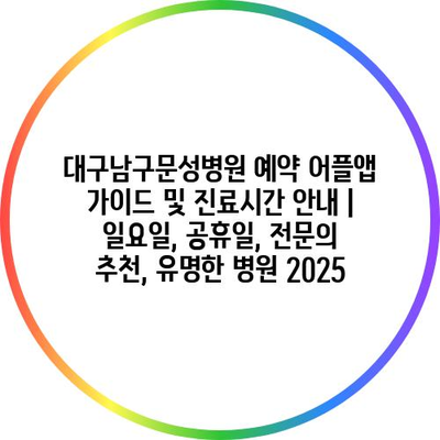 대구 달성 요양병원 예약 방법과 진료시간 안내 | 어플, 홈페이지, 추천 전문의 및 일요일 공휴일 정보”