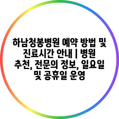 하남청봉병원 예약 방법 및 진료시간 안내 | 병원 추천, 전문의 정보, 일요일 및 공휴일 운영