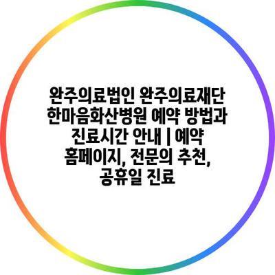 완주의료법인 완주의료재단 한마음화산병원 예약 방법과 진료시간 안내 | 예약 홈페이지, 전문의 추천, 공휴일 진료