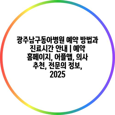 광주남구동아병원 예약 방법과 진료시간 안내 | 예약 홈페이지, 어플앱, 의사 추천, 전문의 정보, 2025