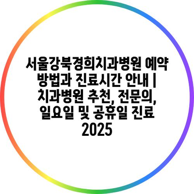 서울강북경희치과병원 예약 방법과 진료시간 안내 | 치과병원 추천, 전문의, 일요일 및 공휴일 진료 2025