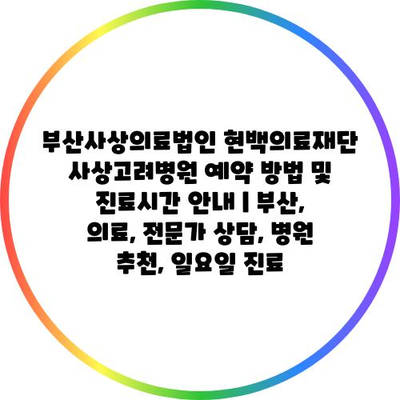 부산사상의료법인 현백의료재단 사상고려병원 예약 방법 및 진료시간 안내 | 부산, 의료, 전문가 상담, 병원 추천, 일요일 진료