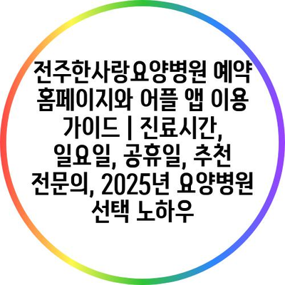 전주한사랑요양병원 예약 홈페이지와 어플 앱 이용 가이드 | 진료시간, 일요일, 공휴일, 추천 전문의, 2025년 요양병원 선택 노하우