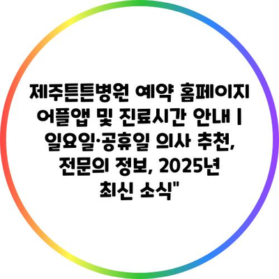 제주튼튼병원 예약 홈페이지 어플앱 및 진료시간 안내 | 일요일·공휴일 의사 추천, 전문의 정보, 2025년 최신 소식”